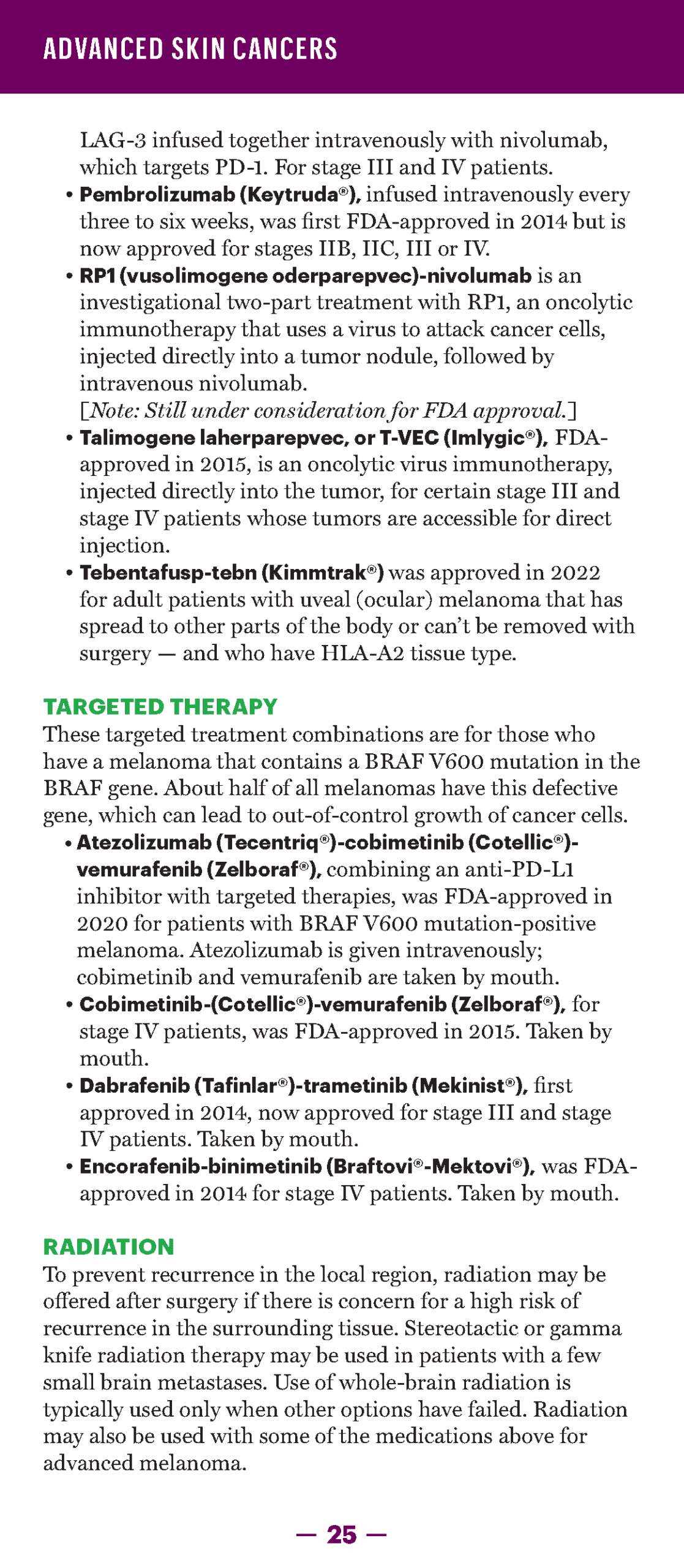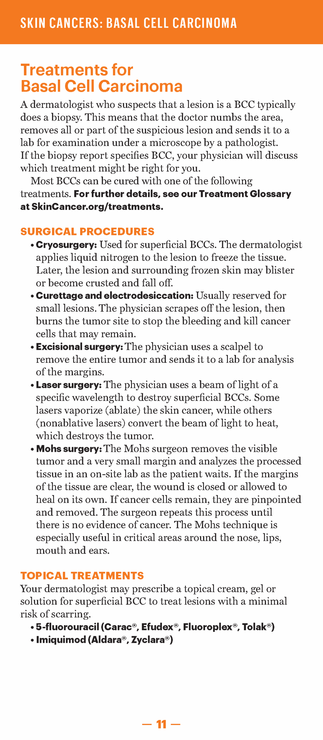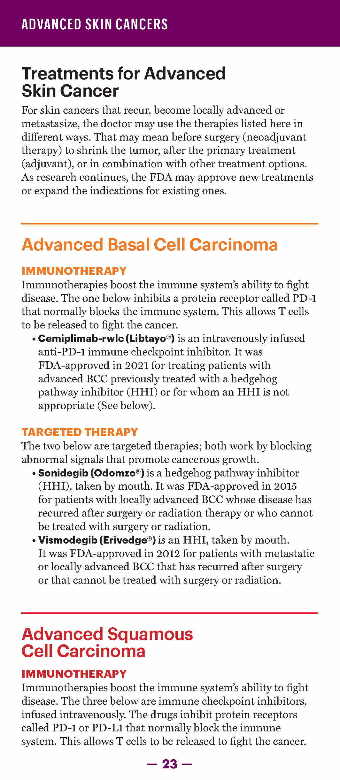 - The latest FDA-approved treatments and link to our companion treatment glossary online (skincancer.org/treatments).