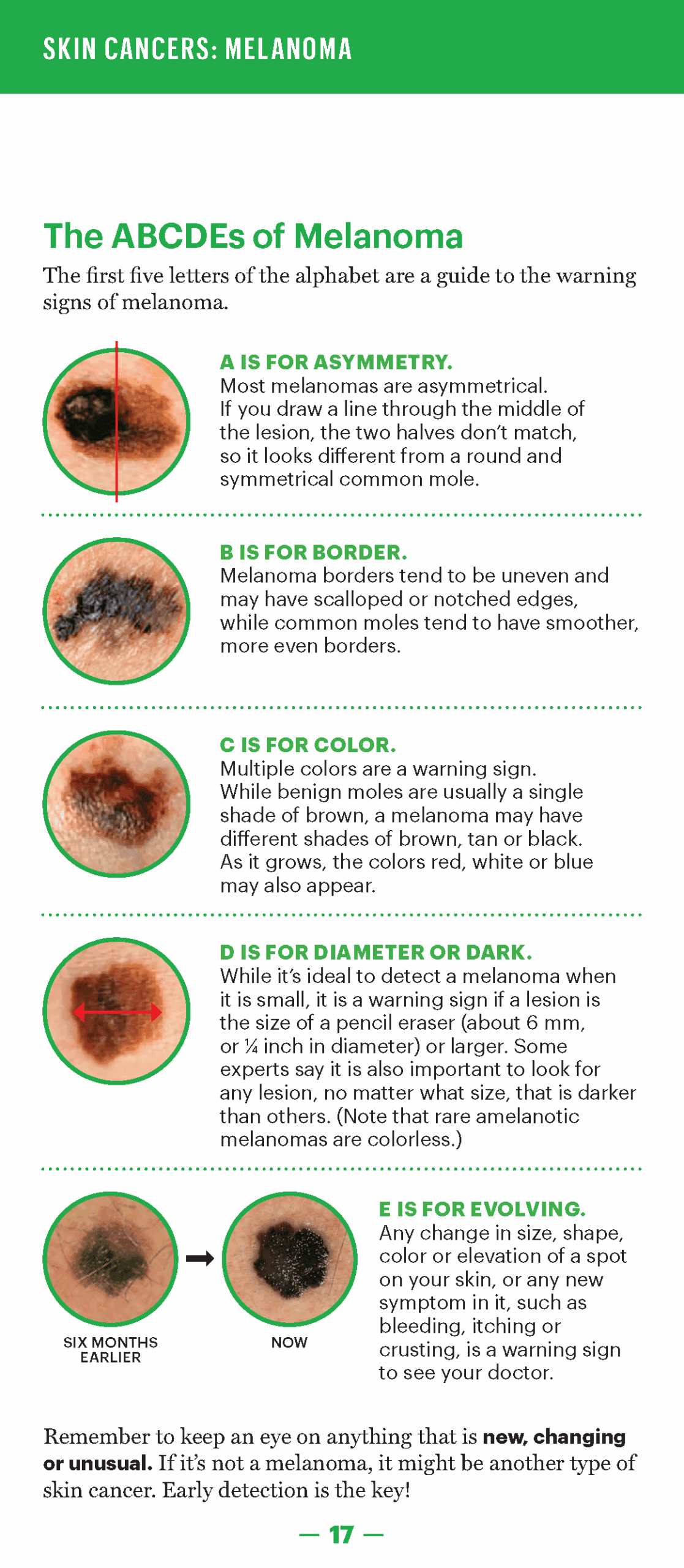 - Plus, a new section on advanced skin cancers and what to know and do if you are diagnosed with a skin cancer that has become advanced.