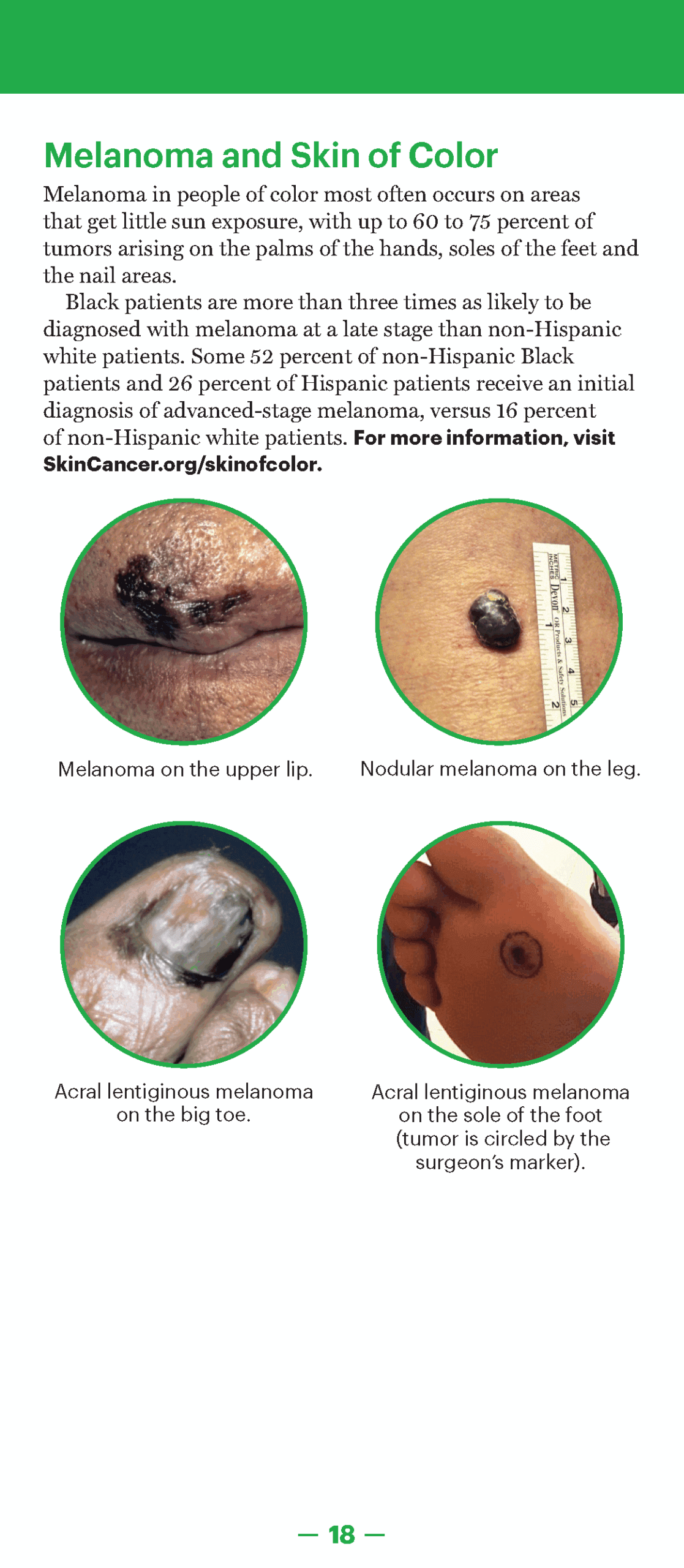 We created this guide to help you educate your patients about the risks of skin cancer, spot potential skin cancers early, when they are most likely to be cured, and seek prompt, effective treatment.